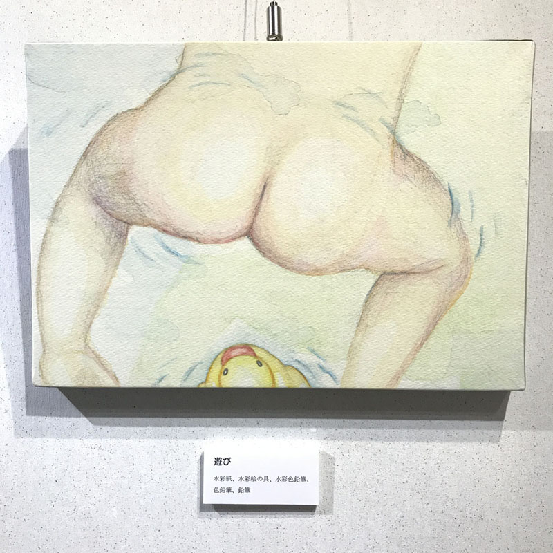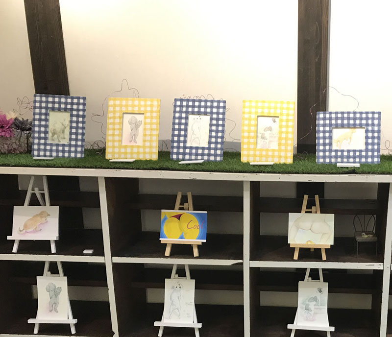 「おしり」をテーマに、水彩やアクリルガッシュなどの平面作品から、陶器の立体作品まで。 そして、大人から子供だけでなく、犬のおしりといった多種多様なおしり作品を制作発表しました。