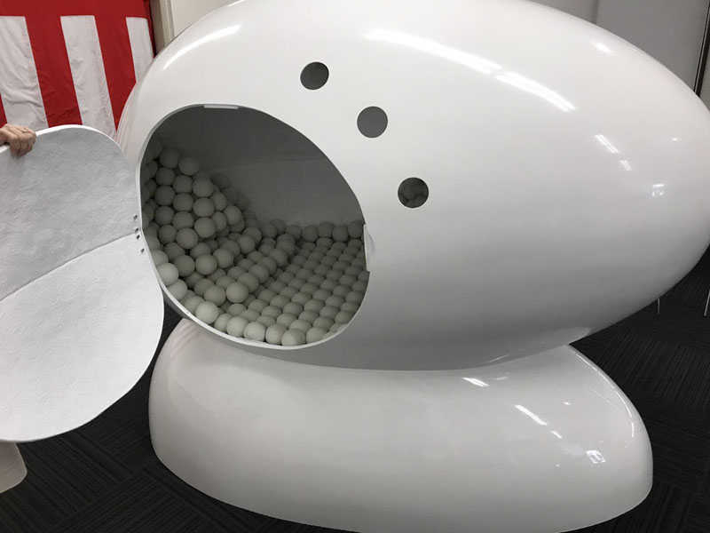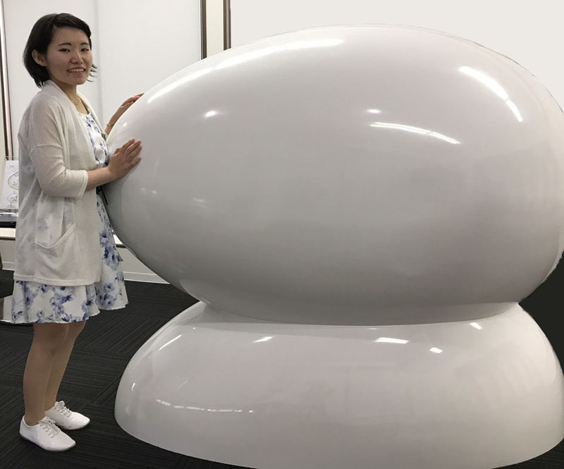 「未来のお風呂をデザインする」というテーマを与えられました。 まず、お風呂とはどんな場所か考えると、安心できる場所だと思いました。 究極に安心できる場所とは、やはりお母さんのお腹の中なのではないかと思い立ち、それを連想させる卵型のデザインにしてみました。